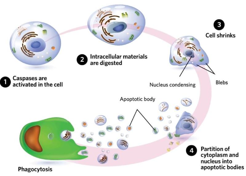 Nosso corpo é composto de 30 a 40 trilhões de células. Destas, os cientistas acreditam que ~300 milhões morrem a cada minuto e geralmente são substituídas por células saudáveis. Essas células geralmente morrem pelo processo natural de apoptose, comumente conhecido como morte celular programada. Quando uma célula começa a funcionar mal, é danificada ou se torna desnecessária, ela receberá sinais que iniciam a apoptose, causando a morte eventual da célula.