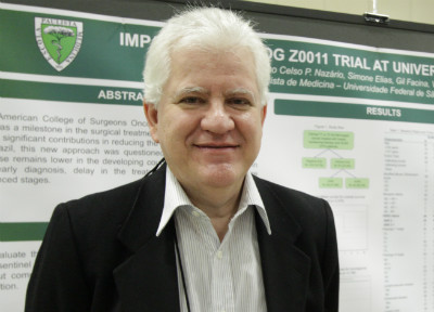 Afonso Celso Pinto Nazário (foto), Simone Elias, Gil Facina e Vanessa Monteiro Sanvido, da Universidade Federal de São Paulo, assinam estudo aceito para apresentação em poster no San Antonio Breast Cancer Symposium 2019. “A sobrevida global e a recorrência locorregional em pacientes com linfonodo sentinela axilar metastático tratados apenas com SLND não diferiram daqueles submetidos à ALND, corroborando os dados do ACOSOG Z0011”, concluíram os autores.