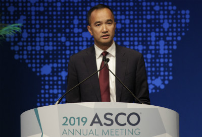 Basket trial de fase II apresentado na ASCO 2019 avaliou a atividade do anticorpo droga-conjugado anti-HER2 ado-trastuzumabe emtansine em pacientes com câncer de glândulas salivares (SCGs), um tumor raro sem terapia aprovada para a doença metastática. A amplificação de HER2 ocorre em 8% entre todas as histologias das SCGs e em 25 a 33% do subtipo histológico agressivo de carcinoma ductal salivar (SDC). O estudo atingiu o endpoint primário ao demonstrara que o anticorpo droga-conjugado é eficaz em pacientes com HER2-amplificado. O oncologista Bob T. Li (foto), do Memorial Sloan Kettering Cancer Center, é o primeiro autor do estudo.