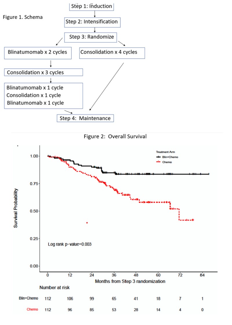 Neste estudo randomizado de fase III, realizado por pesquisadores do ECOG-ACRIN Cancer Research Group, foram considerados pacientes para quimioterapia convencional com ou sem blin para determinar se aqueles que se tornaram MRD negativos (<0,01%) após a quimioterapia de indução poderiam ter melhores resultados com a adição do novo agente blinatumomabe.