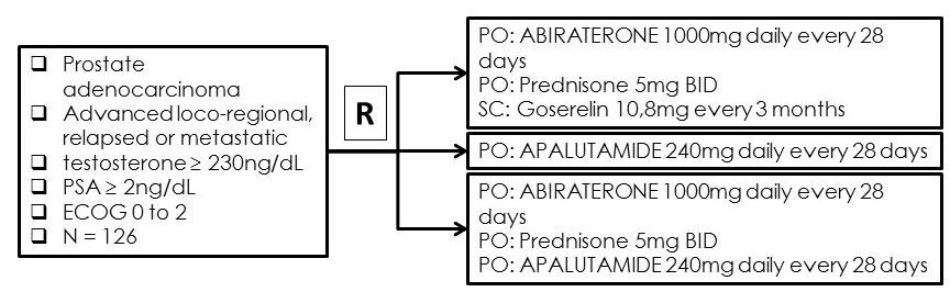 Referência: Phase II Randomized Study of Abiraterone Acetate Plus ADT Versus APALUTAMIDE Versus Abiraterone and APALUTAMIDE in Patients with Advanced Prostate Cancer With Non-castrate Testosterone Levels - ClinicalTrials.gov identifier (NCT number): NCT02867020